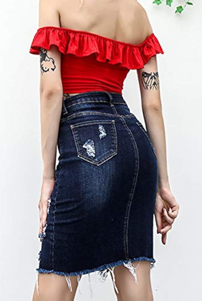 chouyatou 女款 Bodycon 前開叉 深水洗中長牛仔鉛筆裙