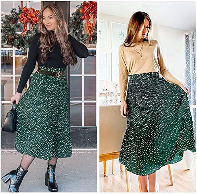 • 特色:高腰、彈性腰帶、兩個口袋、打褶、A 字型、波卡圓點、長裙、中長裙。 兩側都有口袋,方便實用。 您可以將手機鑰匙等小物放入其中。 ​ 高彈性打褶腰部和優雅的下擺,適合各種身體。 ​