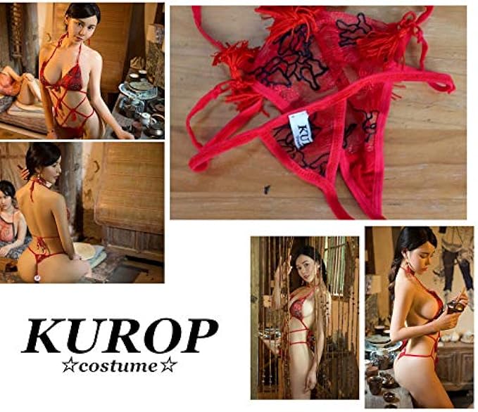 Kurop 女款繩狀性感內衣紅色比基尼亞洲風格內衣內衣