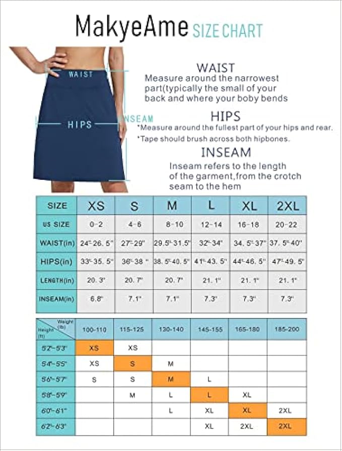 MakyeAme Women's 20" Knee Length Golf Skorts Skirts Casual Athletic Tennis Modest Skirts High Waist with Pockets UPF50+
